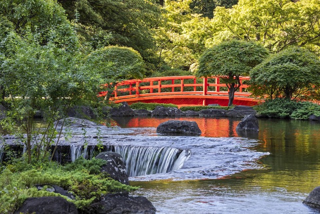 Hotel New Otani Tokyo's most extraordinary feature is not its rooms or its restaurants but its garden: a 400-year-old Japanese garden, developed from the grounds of a feudal lord's estate during the Edo period, which now occupies a green island of approximately 40,000 square meters in the center of Akasaka. Walking through it — along stone paths beside koi-filled ponds, past stone lanterns and clipped azaleas and maple trees whose seasonal color is among the finest available in central Tokyo — requires a conscious adjustment of the understanding that you are in the middle of a large city hotel complex.